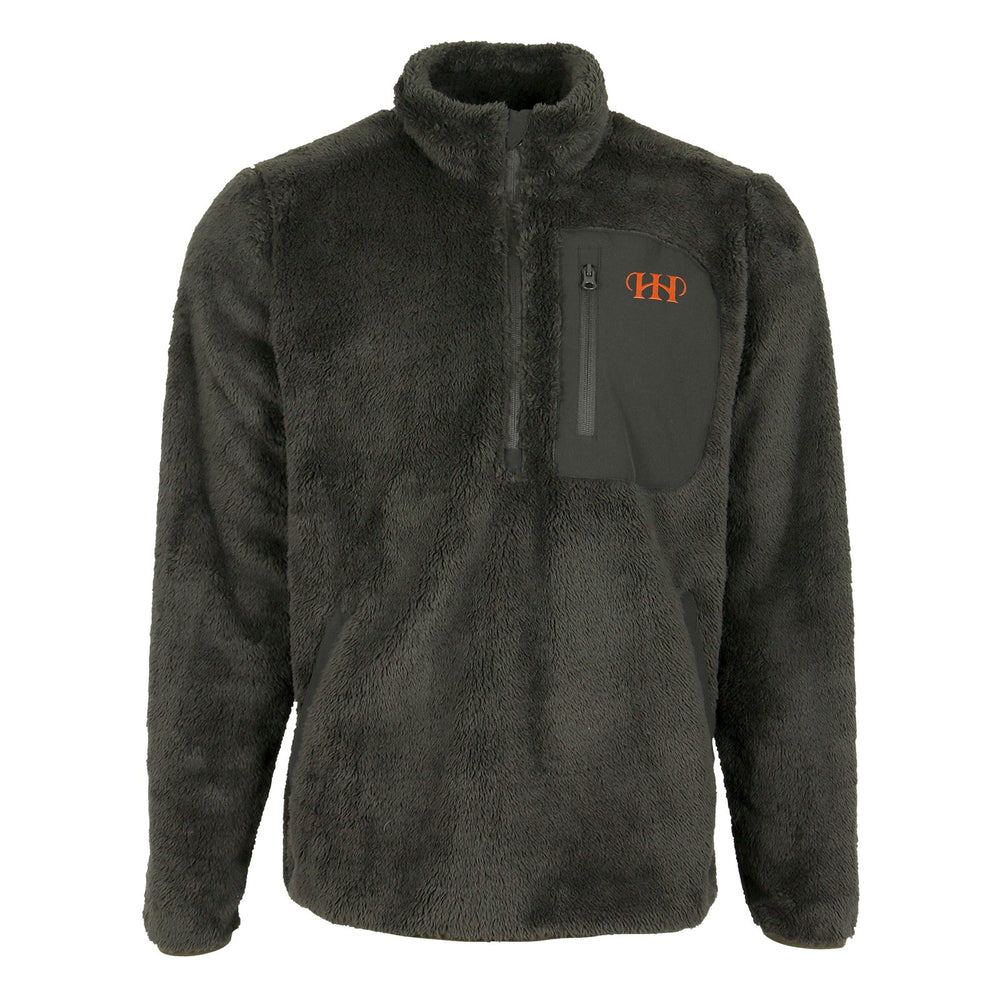 Der Fleecepullover Sherpa von House Of Hunting in klassischem Grün ist aus langflorigem Fleece gefertigt und bietet optimalen Schutz vor Kälte.