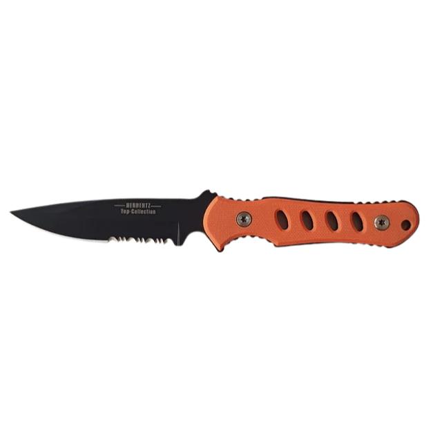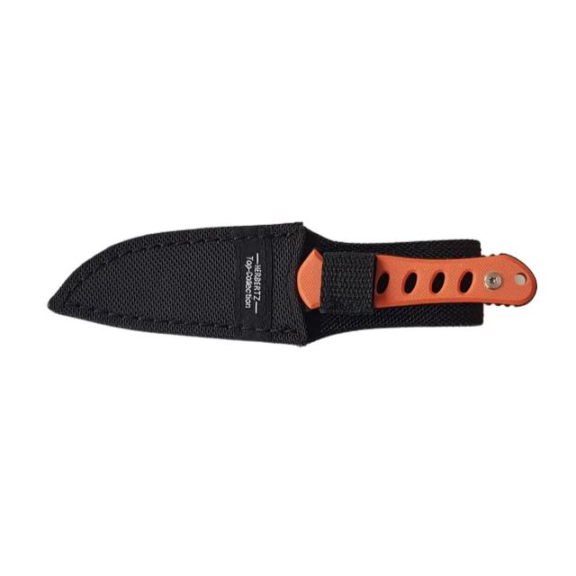 Das kleine, handliche Gürtelmesser aus der Herbertz TOP-Collection überzeugt durch seine Full Tang Klinge aus rostfreiem 440er Stahl. Die schwarze Klingenbeschichtung harmoniert eindrucksvoll mit der orangefarbenen Griffbeschalung aus robustem G10.