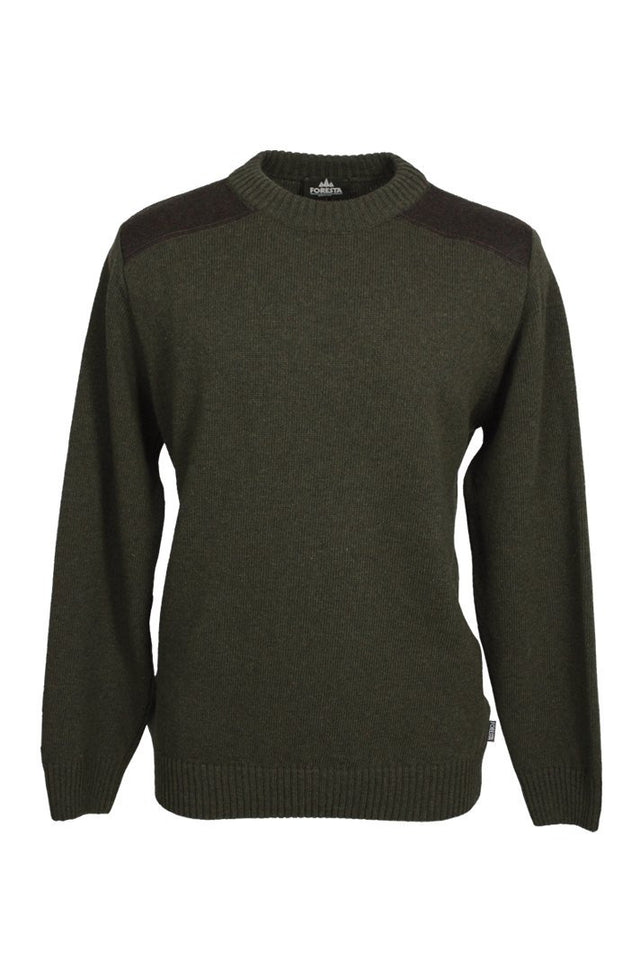 Damenjagdpullover Leoni oliv mit Lodenbesatz an Schulter und mit Ärmelpatches. Das perfekte Sweatshirt für Jägerinnen.
