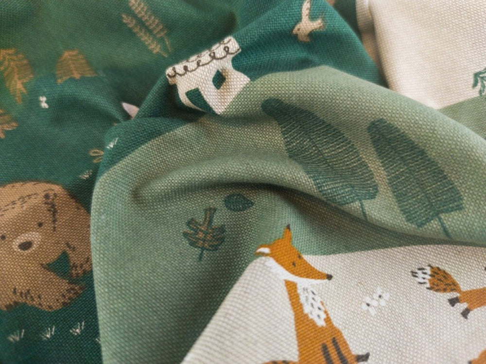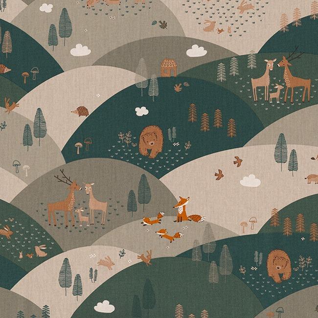 Naturmotiv mit Fuchs, Reh, Hase, Bär und Vogel schafft eine warme, freundliche