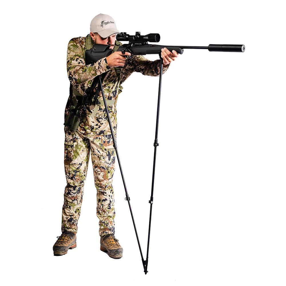 Dank eines innovativen Justiersystems passt sich der Montéria Stick flexibel jeder Postierung und der Körperhaltung jedes Jägers an.
