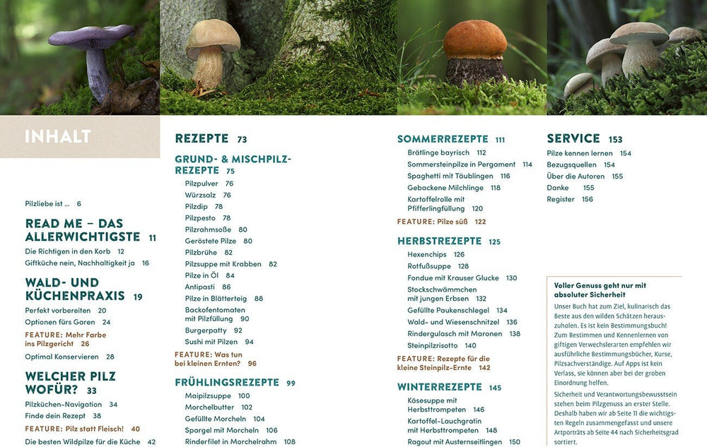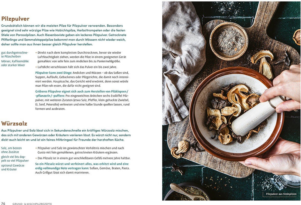 Neben den klassischen Rezepten enthält das Buch über 50 inspirierende Pilzrezepte , die sowohl bewährte Klassiker als auch überraschende Variationen präsentieren. Die Autor:innen geben nützliche Küchentricks, Tipps zur richtigen Lagerung und erläutern die wichtigsten Grundregeln der Pilzkonservierung, damit die schmackhaften Zutaten länger haltbar bleiben.