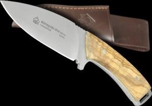 gefertigten Griff aus Olivenholz. Wird mit einer braunen Ledergürtelscheide