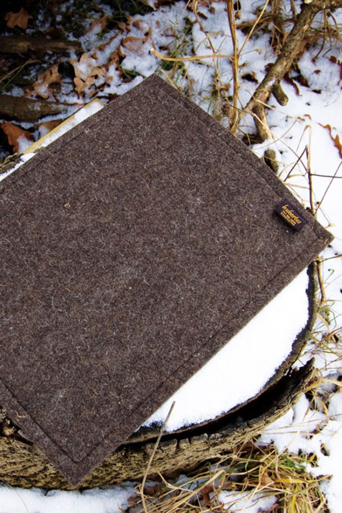 Gefertigt aus 13 mm dickem, braunem Filz (100% Schafschurwolle), bietet es hervorragende Eigenschaften wie Wärmeisolierung, Temperaturausgleich und Wasserabweisung.