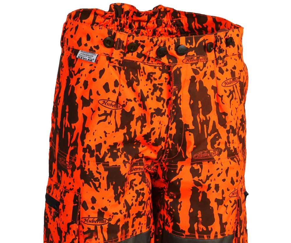 Für maximale Sicherheit sorgt eine doppelte Kevlarschicht im gesamten Vorderbeinbereich, die wirksamen Schutz vor Stichverletzungen durch wehrhaftes Schwarzwild bietet. Auch der hintere Beinbereich ist mit Kevlar verstärkt, um den Schutz rundum zu gewährleisten. Der elastische Bund ist im Nierenbereich höher geschnitten und sorgt für sicheren Sitz bei Bewegung.