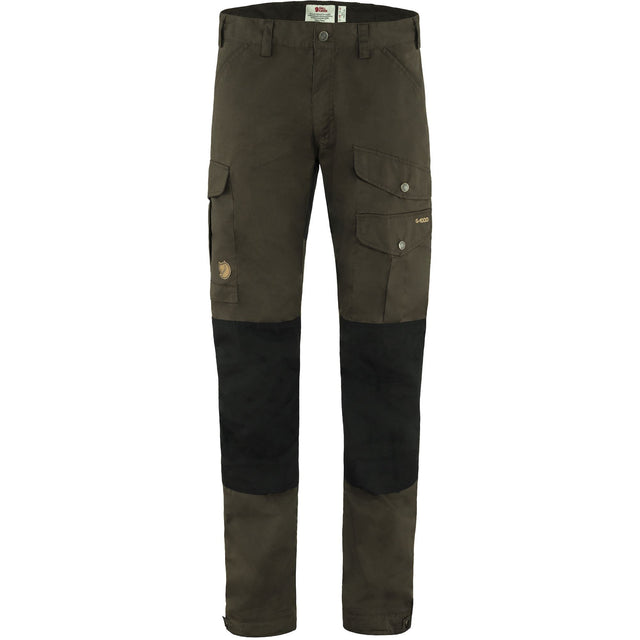 Strapazierfähige Trekkinghose für Abenteuer im Gebirge und Wald. Aus strapazierfähigem, wind- und wasserabweisendem G-1000 Material und an Knien und Gesäß mit zweilagigem Material verstärkt. Reguläre Passform mit mittelhohem Bund und vorgeformten Knien, die über Einschübe für Knieschoner (Zubehör) verfügen. Sechs Taschen bieten praktischen Stauraum; zwei Eingrifftaschen, zwei Beintaschen links und eine geräumige Kartentasche mit integrierter Meshtasche für Smartphone rechts. Die praktische kleinere Taschen am rechten Bein bietet Platz für ein Multifunktionswerkzeug. Elastische, verstellbare Riemen mit Druckknöpfen an den Beinabschlüssen. HINWEIS: dieses Modell hat in allen Größen eine kürzere Beininnenlänge von 76 cm/30 Zoll. Auch in normaler Version und mit langer Beinlänge erhältlich.