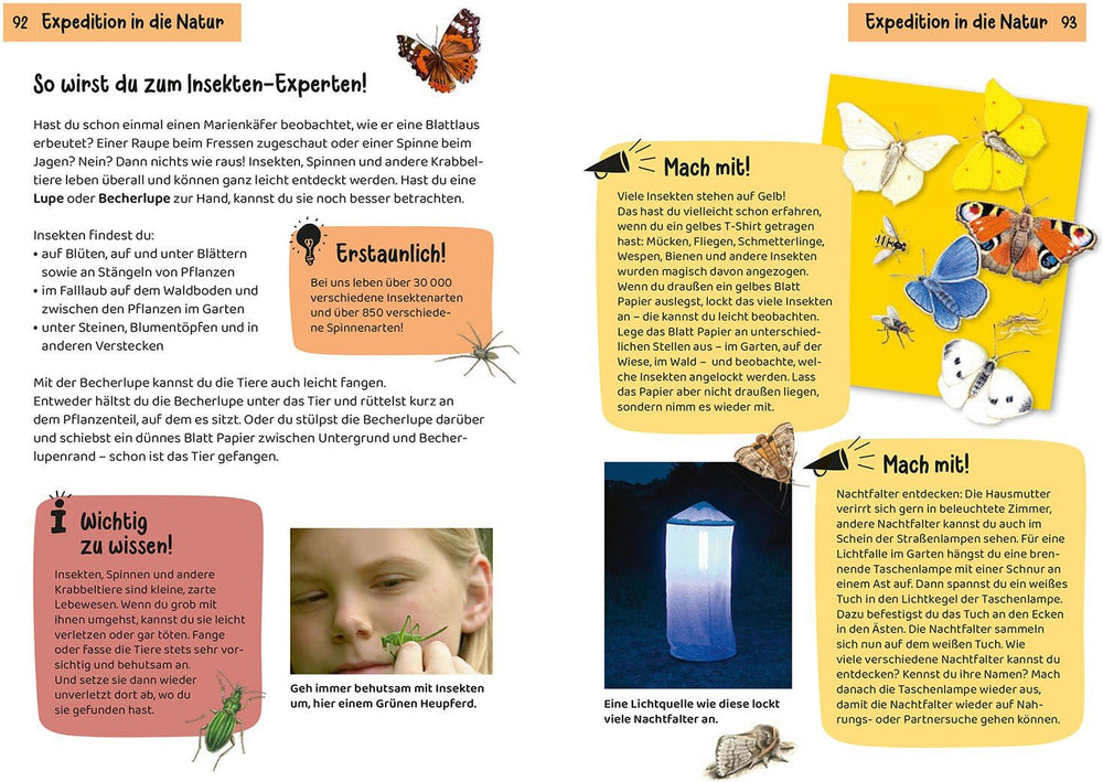 Neben dem Bestimmen gibt es auch viele praktische Tipps zum Mitmachen – vom Bau eines Insektenhotels bis zu Beobachtungsideen. Empfohlen vom NABU – für kleine Entdecker, die Insekten mit Kindern erforschen und spielerisch mehr über die Natur lernen wollen.