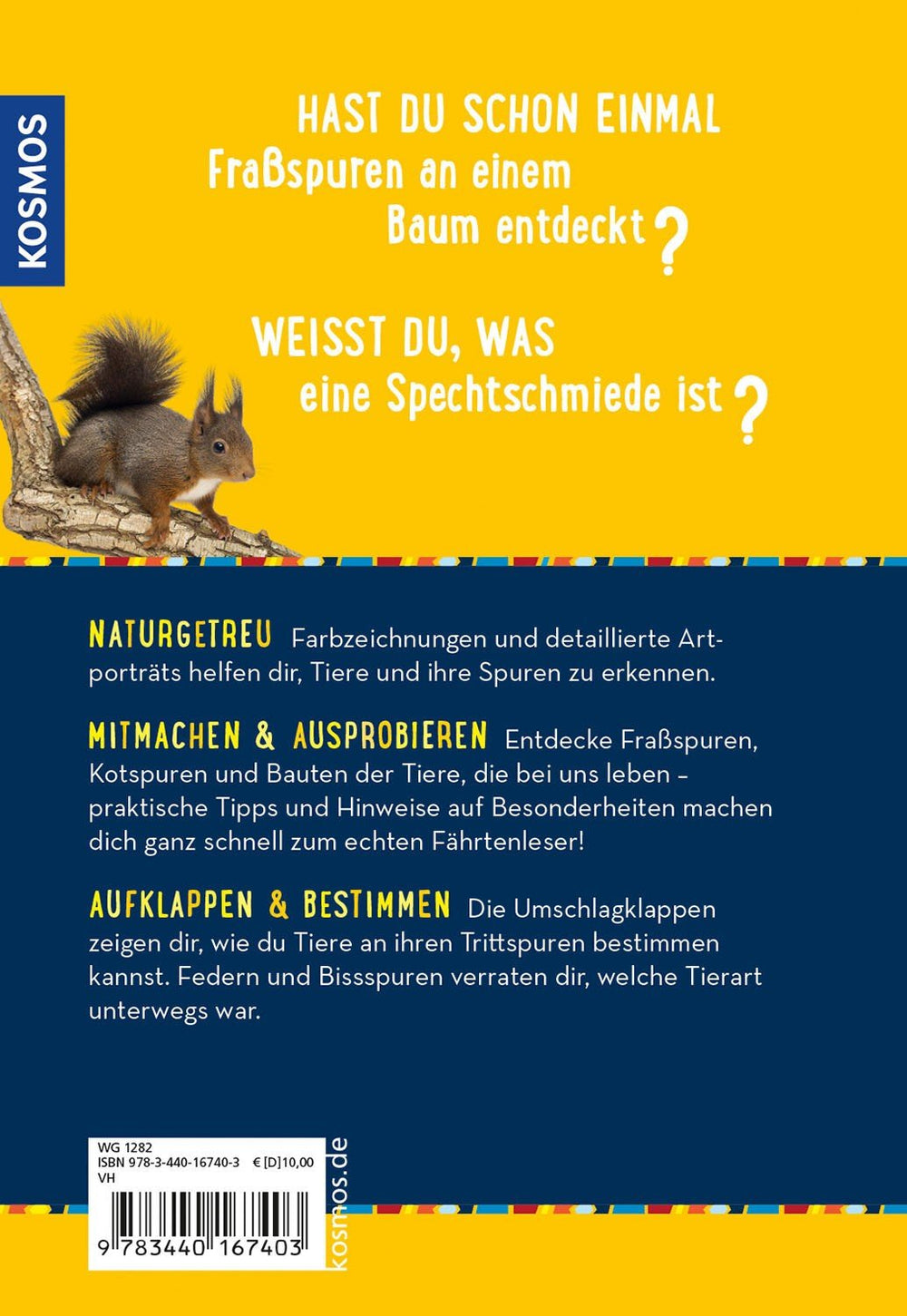 Das Buch zeigt kindgerecht und übersichtlich die wichtigsten Trittsiegel, Fraßspuren, Bauten und sogar Kot von Wild- und Haustieren wie Hund, Katze oder Pferd. Alle Spuren sind nach Tierart geordnet und in Originalgröße abgebildet, was das Erkennen besonders einfach macht.