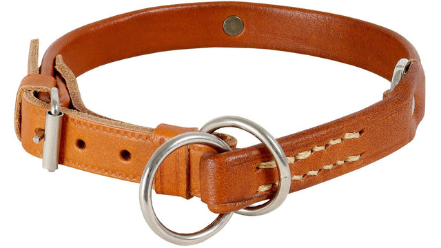 Diese Halsung mit Begrenzung aus ökologisch gegerbtem Fahlleder wurde dreifach umgelegt (ohne Steppnaht) und ist besonders weich und angenehm für den Hund.